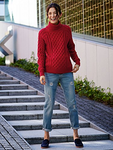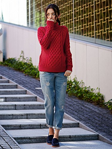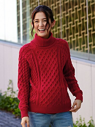 Angeliebe エンジェリーベ ケーブル 柄 タートル ネック ニット フリー レッド