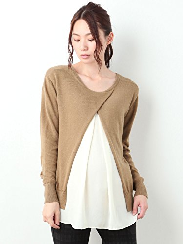 Angeliebe エンジェリーベ マタニティ トップス 授乳口付き ソフト アンゴラ & シフォン バック シャン ニット 妊婦服 産前 産後 フリー キャメル 20974 20974100
