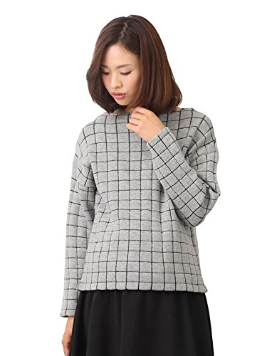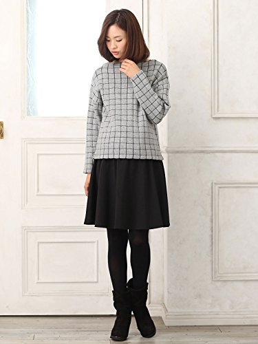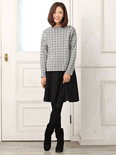 Angeliebe エンジェリーベ マタニティ トップス 授乳口付き ウィンドペン チェック ジャガード ボート ネック ニット 妊婦服 産前 産後 フリー 杢 グレー × ブラック 20975 20975100