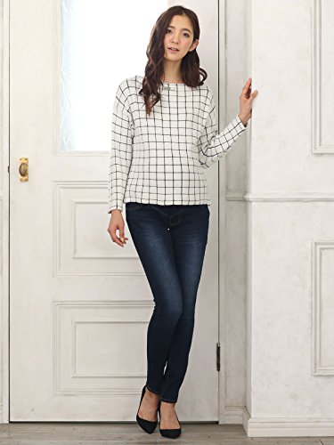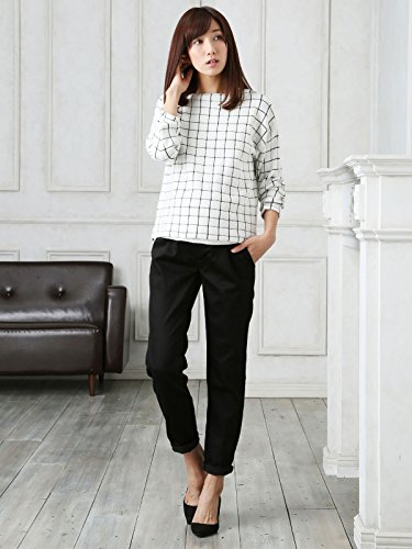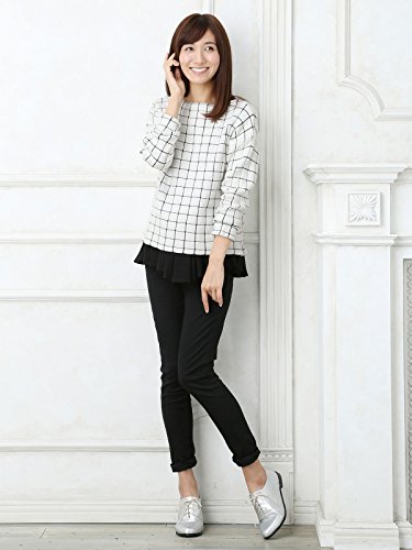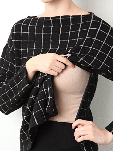 Angeliebe エンジェリーベ マタニティ トップス 授乳口 付 ウィンドペン チェック ジャガード ボート ネック ニット 妊婦服 産前 産後 フリー オフ × ブラック