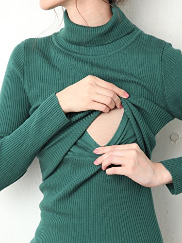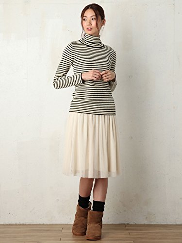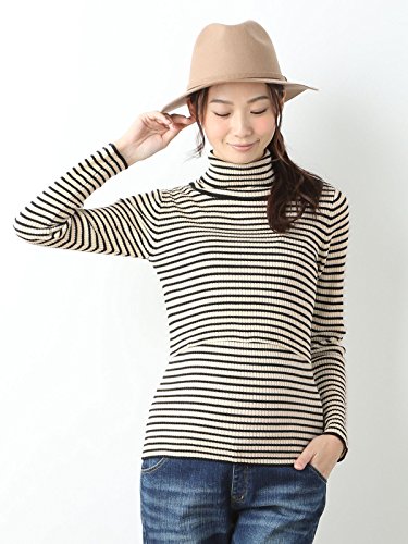 Angeliebe エンジェリーベ マタニティ トップス 授乳口付き 綿 タッチ アクリル リブ タートル 妊婦服 産前 産後 L ブラック × オフ 20995 20995470