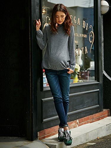 Angeliebe エンジェリーベ マタニティ トップス やわらか タートル ネック ニット 妊婦服 産前 産後 フリー グレー 21150 21150200