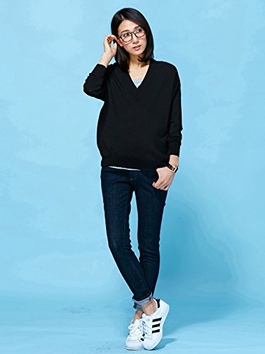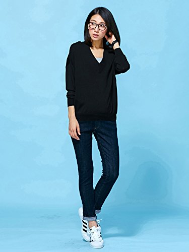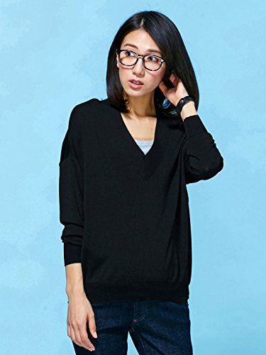Angeliebe エンジェリーベ マタニティ トップス 授乳口 付 ドロップ ショルダー Vネック ニット 産前 産後 対応 妊婦服 長袖 フリー ブラック