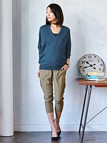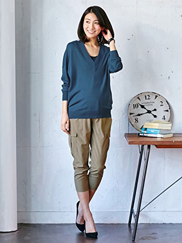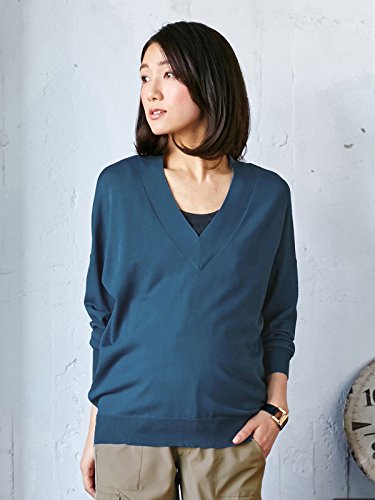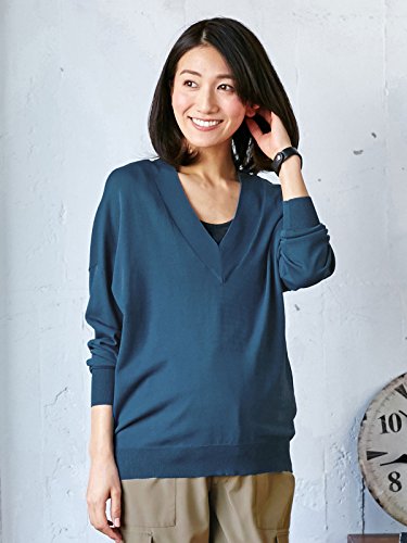 Angeliebe エンジェリーベ マタニティ トップス 授乳口 付 ドロップ ショルダー Vネック ニット 産前 産後 対応 妊婦服 長袖 フリー インディゴ ブルー