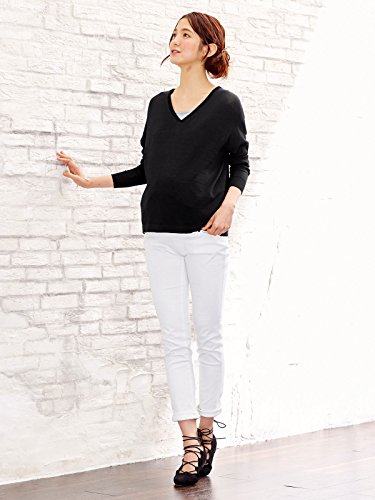 Angeliebe エンジェリーベ マタニティ トップス 授乳しやすい バック シャン Vネック ニット プルオーバー 妊婦服 産前 産後 長袖 フリー ブラック 21416 21416300