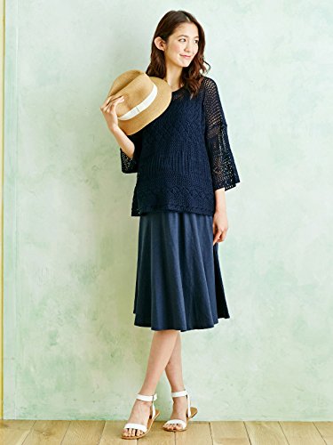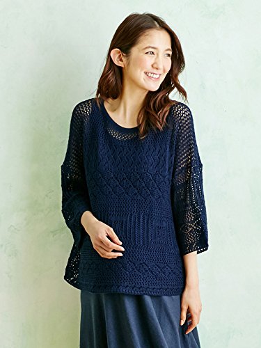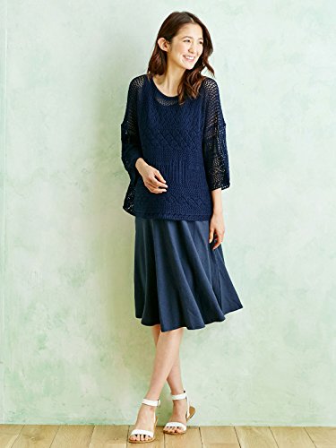 Angeliebe エンジェリーベ マタニティ トップス 授乳しやすい 透かし 模様 ワイド ニット 妊婦服 産前 産後 フリー ネイビー 21442 21442100