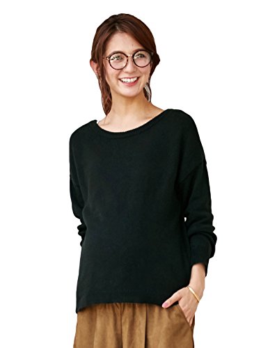 Angeliebe エンジェリーベ マタニティ トップス 授乳 しやすい やわらか コットン ウール クルー ネック 2 WAY ニット 妊婦服 産前 産後 フリー ブラック