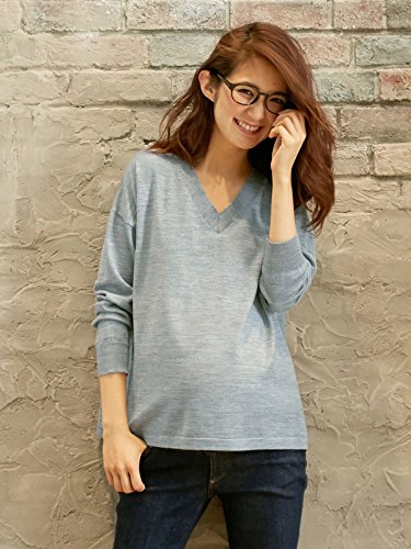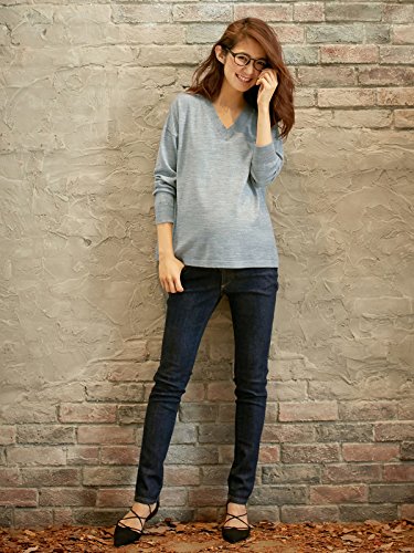 Angeliebe エンジェリーベ 授乳 しやすい ウール 混 ウォッシャブル V ネック ニット フリー 杢 グレー