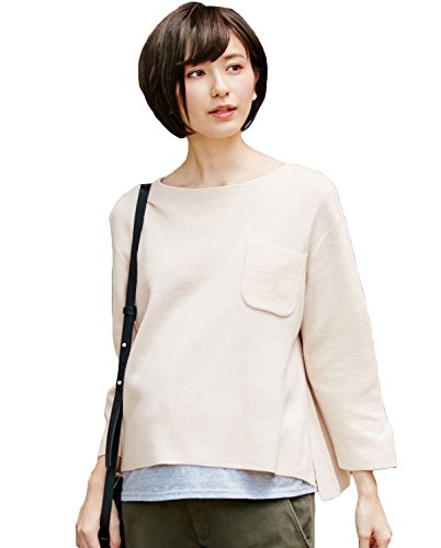 Angeliebe エンジェリーベ 簡単 授乳 ミラノリブ ボートネック サイドスリット ニット 妊婦服 産前 産後 フリー ライト ベージュ 21655 21655200
