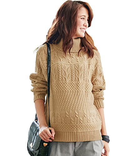 Angeliebe エンジェリーベ マタニティ ウォッシャブル ケーブル タートル ネック ニット セーター 妊婦服 産前 産後 フリー ベージュ