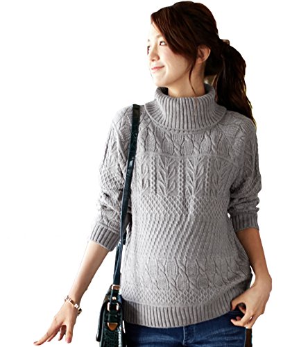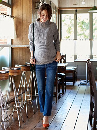 Angeliebe エンジェリーベ マタニティ ウォッシャブル ケーブル タートル ネック ニット セーター 妊婦服 産前 産後 フリー 杢 グレー