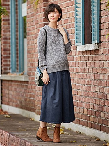 Angeliebe エンジェリーベ マタニティ ウォッシャブル ケーブル ドロップショルダー ニット 妊婦服 産前 産後 長袖 セーター フリー 杢 グレー