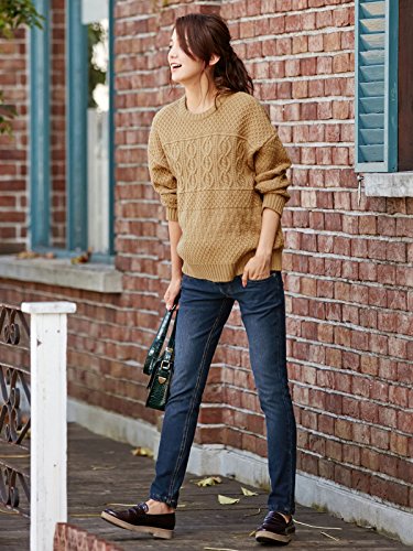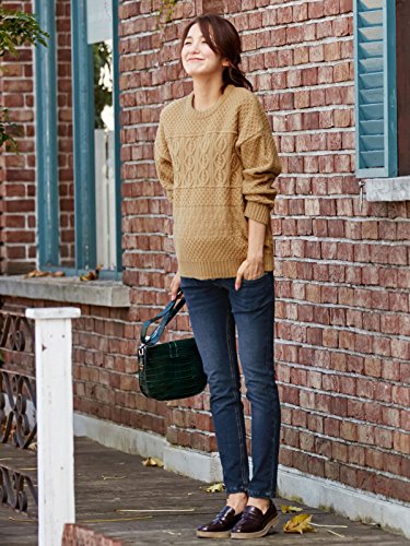 Angeliebe エンジェリーベ マタニティ ウォッシャブル ケーブル ドロップショルダー ニット 妊婦服 産前 産後 長袖 セーター フリー ベージュ