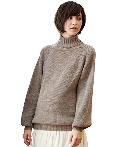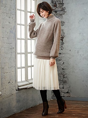 Angeliebe エンジェリーベ 片畦編み タートル ネック ボリューム スリーブ ニット フリー ブラウン