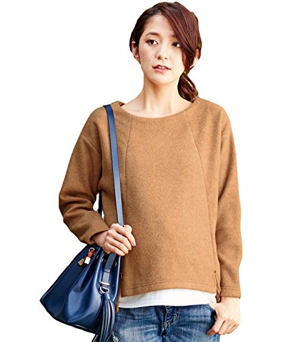 Angeliebe エンジェリーベ マタニティ トップス 授乳口付き 起毛 スライバー 切替 プルオーバー 産前 産後 妊婦服 長袖 フリー キャメル 21704 21704200