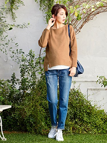 ネックラインを少し広めに開けることで女性らしい雰囲気に。ボトムを選ばず着まわせるあったかプルオーバーで、寒がりなママにおすすめな1枚です。