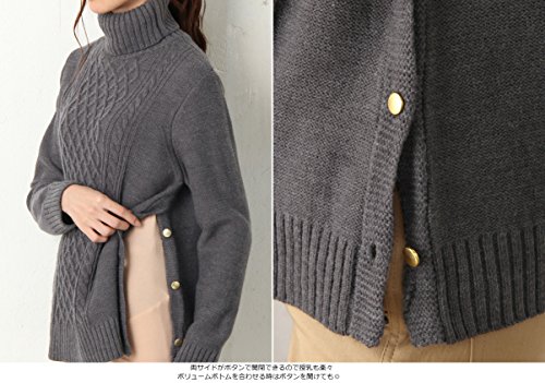 Angeliebe エンジェリーベ マタニティ 授乳しやすい ケーブル編み タートルネック ニット 妊婦服 産前 産後 長袖 フリー ライトグレー 21637 21637200