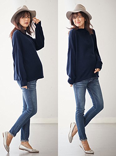 Angeliebe エンジェリーベ マタニティ 授乳しやすい やわらか ボトルネック ニット 妊婦服 産前 産後 長袖 フリー ネイビー 22158 22158500