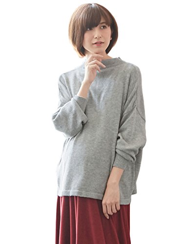 Angeliebe エンジェリーベ マタニティ 授乳しやすい やわらか ボトルネック ニット 妊婦服 産前 産後 長袖 フリー 杢 グレー 22158 22158300