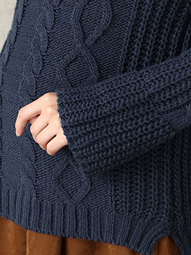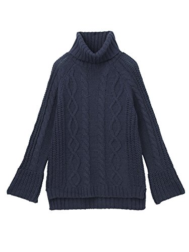 - ●【定番のアラン編みニットに、トレンド要素をプラスして旬な雰囲気に】ナチュラルなニットスタイルが楽しめるざっくりとしたタートルニットです。立体感のあるアラン編みデザインがあたたかそうな雰囲気。たっぷりとしたボリュームネックや少しだけ広がったベルスリーブ、前後差をつけた身頃などでトレンド要素も満載です。