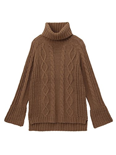 - ●【定番のアラン編みニットに、トレンド要素をプラスして旬な雰囲気に】ナチュラルなニットスタイルが楽しめるざっくりとしたタートルニットです。立体感のあるアラン編みデザインがあたたかそうな雰囲気。たっぷりとしたボリュームネックや少しだけ広がったベルスリーブ、前後差をつけた身頃などでトレンド要素も満載です。