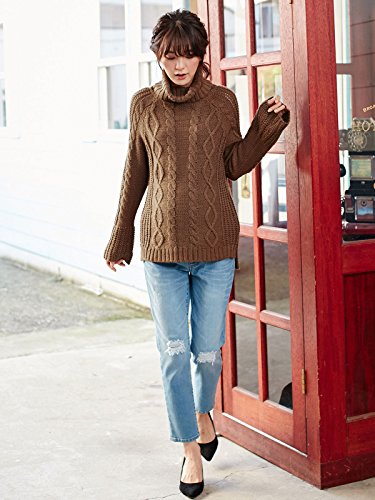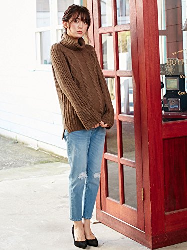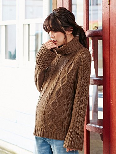 Angeliebe エンジェリーベ マタニティー ロービングヤーン タートルネック ベルスリーブ ニット 妊婦服 産前 産後 長袖 セーター トップス フリー ブラウン 22247 22247200