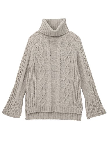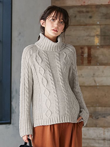 - ●【定番のアラン編みニットに、トレンド要素をプラスして旬な雰囲気に】ナチュラルなニットスタイルが楽しめるざっくりとしたタートルニットです。立体感のあるアラン編みデザインがあたたかそうな雰囲気。たっぷりとしたボリュームネックや少しだけ広がったベルスリーブ、前後差をつけた身頃などでトレンド要素も満載です。