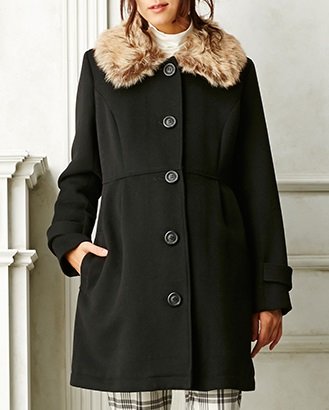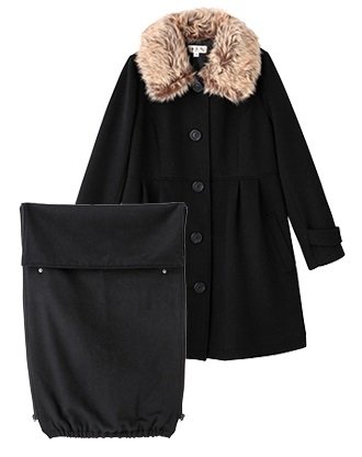 Angeliebe エンジェリーベ ウール 混 カルゼ ファー 衿 付 コート L 黒