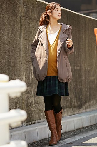 軽さが魅力の中綿コート。ピーチスキン風のなめらかな肌触りで上品カジュアルに
