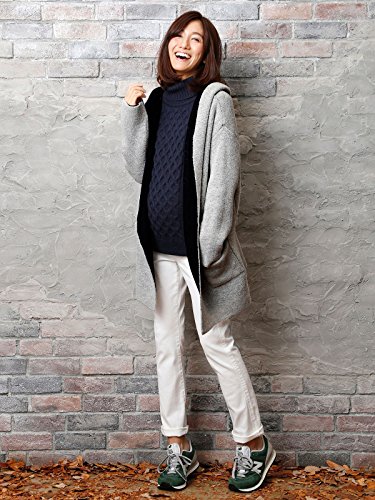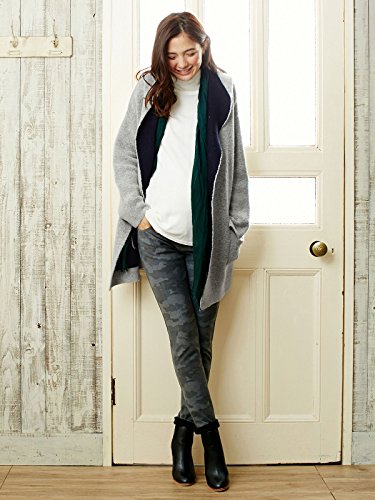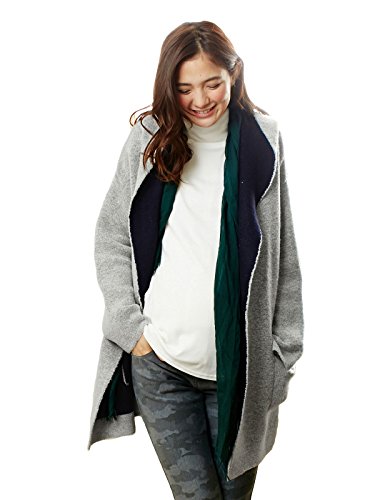 Angeliebe エンジェリーベ マタニティ コート 接結 配色 ニット パーカ コーディガン 妊婦服 産前 産後 カーディガン 羽織もの フリー グレー × ネイビー