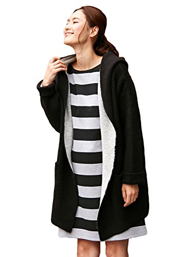Angeliebe エンジェリーベ マタニティ コート 接結 配色 ニット パーカ コーディガン 妊婦服 産前 産後 カーディガン 羽織もの フリー ブラック × グレー 20979 20979200