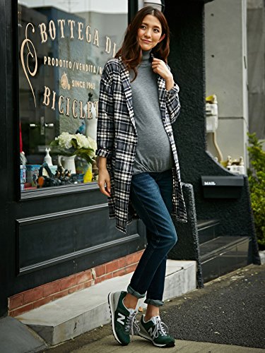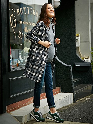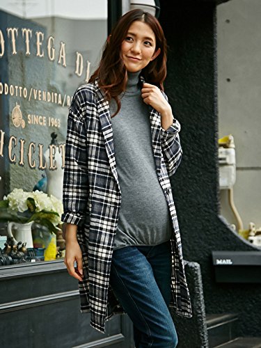 Angeliebe エンジェリーベ マタニティ ネル チェック ロング ジャケット 妊婦服 産前 産後 羽織もの フリー ネイビー 21151 21151200