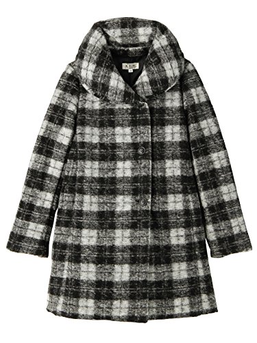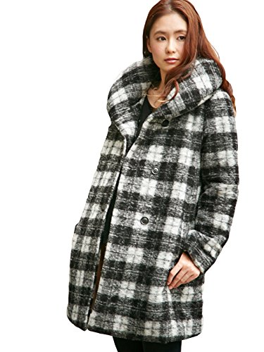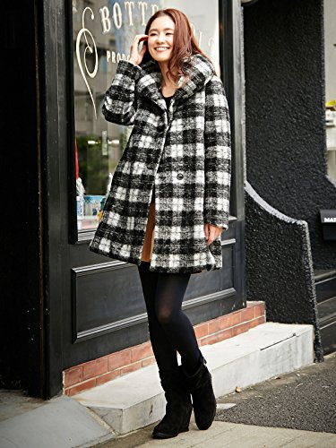 Angeliebe エンジェリーベ マタニティ コート ダッカー 付 スライバー ニット チェック 中 わた 入り ママコート 妊婦服 産前 産後 ベビー L ブラック × ホワイト