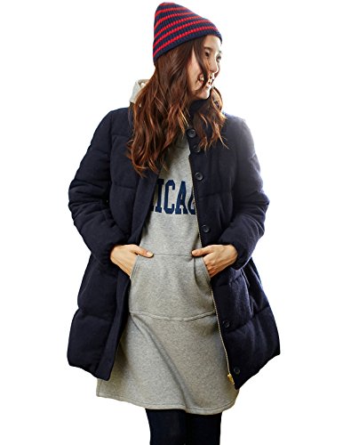 Angeliebe エンジェリーベ ダッカー 付 スライバー ニット 中 わた 入り ママ コート L ネイビー