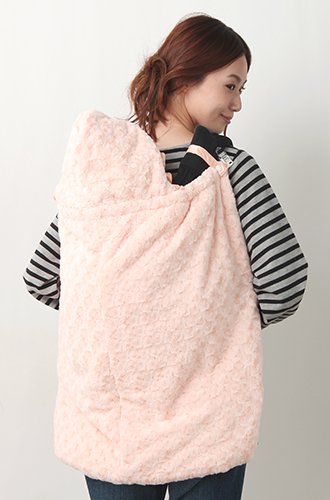 Angeliebe エンジェリーベ マタニティ バラ柄 × ドット 足カバー 付き 3WAY ケープ 防寒 ボア あったか だっこ おんぶ ベビーカー 使用可能 フリー サーモン ピンク
