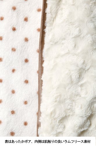 上品なバラ柄のボアでフェミニンに。裏側もガーリーなドット柄になっていてリバーリブルで使えます。