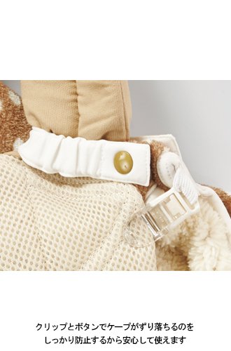 赤ちゃんをあたたかく包み込むケープはフードのお耳がとってもキュート。