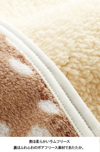 表側はやわらかく暖かなラムフリースを、裏側には肌触りのよい毛足の長いボアフリースを使用しています。