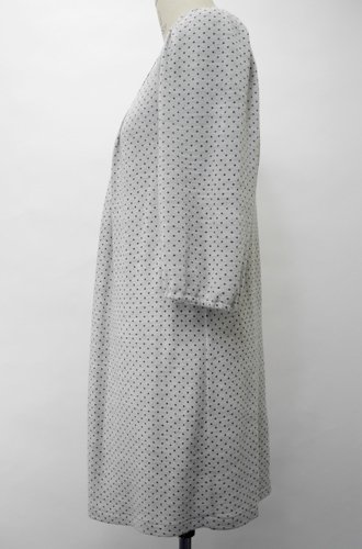 流行の水玉柄は、地色から色を1度抜き、そこに再度水玉柄をプリントしたひと手間かけた抜染プリント。