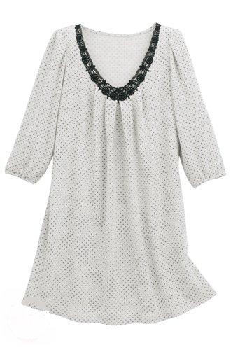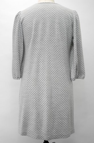 - ●前=衿ぐりにケミカルレース付、胸元のボックス&タック入り、袖口ゴム入り