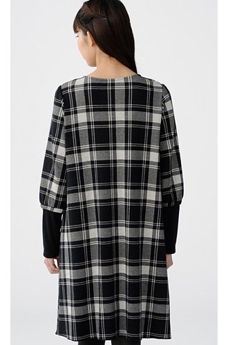 カットソーの上にワンピを羽織ったようなレイヤード風ワンピース。1枚の仕立てで軽いAラインのシルエットは体形を選ばないデザイン。ふわりとした袖から見えるレイヤード部分が腕をすっきり、細く見せてくれます。