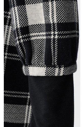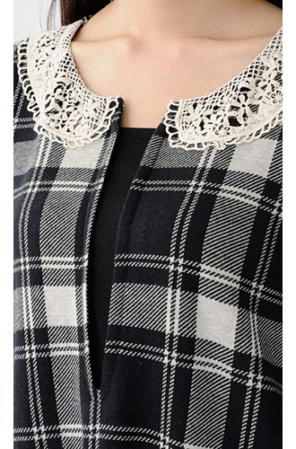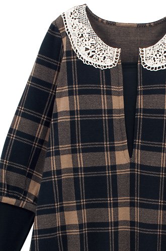 - ●前=衿はかぎ針風パーツレース 胸元・袖はニット天竺切り替え