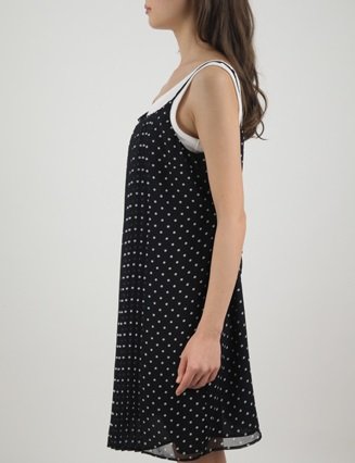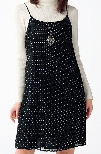 流行の水玉素材を、シルエットが広がりにくいプリーツでスレンダー魅せ♪