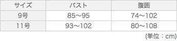 - ●サイズ9号:着丈90㎝、バスト85~95㎝、腹囲74~102㎝