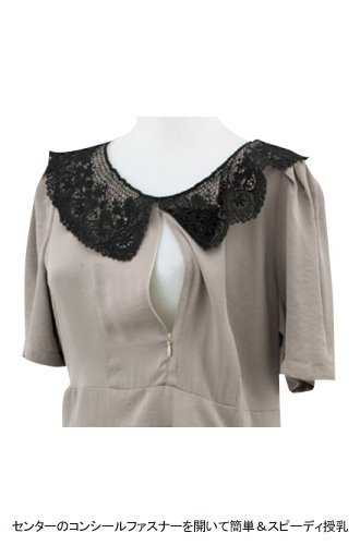 パリの街角で見つけたアンティークドレスのよう。人目を惹きつける優雅な1枚でヒロインを気取って授乳機能があるとは思えない! ワッシャー加工で抑えた微光沢×クラシカルなレース×雰囲気ある細かなシワ感のマリアージュで叶えた、気品あふれるワンピース。広幅レースは華奢なデコルテ魅せに、ハイウエストから広がるAラインシルエットはスタイルカバーにピッタリ♫