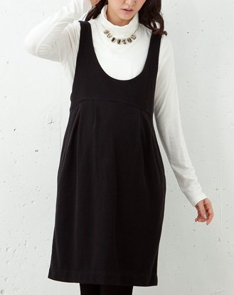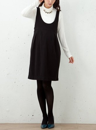 ハイウエストのコクーンシルエットがやさしい雰囲気のジャンパードレス。ハイネックニットなどとの重ね着がおすすめです。