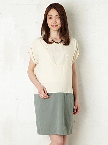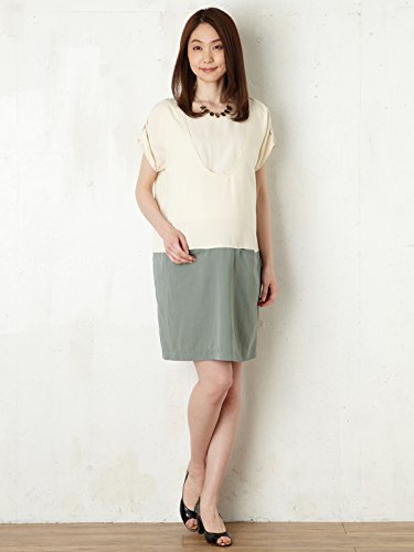 Angeliebe エンジェリーベ マタニティ 授乳口 付 コクーン シルエット ワンピース 妊婦服 産前 産後 半袖 フリー アイボリー × ペール カーキ