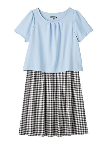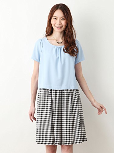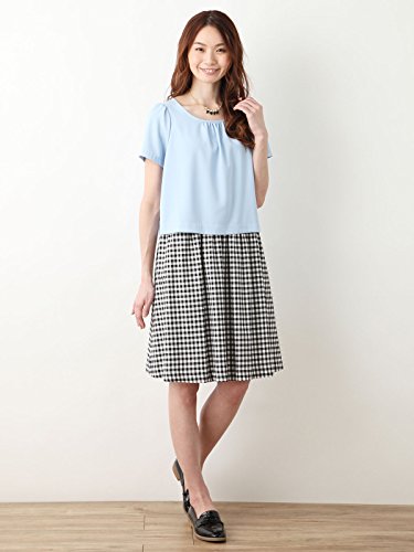 Angeliebe エンジェリーベ 産後 授乳 ウェア チェック ドッキング ワンピース 9号 ライト ブルー × チェック