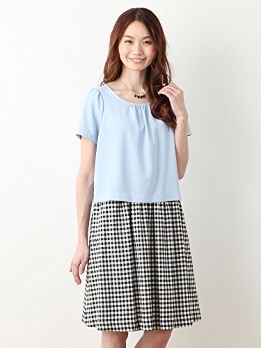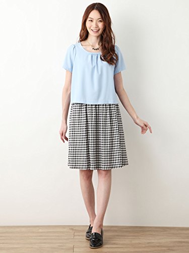 Angeliebe エンジェリーベ 産後用 授乳 ウェア チェック ドッキング ワンピース 授乳服 ママ 半袖 11号 ライト ブルー × チェック