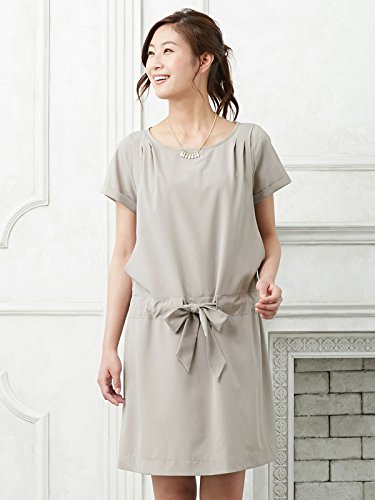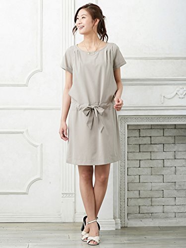 Angeliebe エンジェリーベ 産後用 ワンピース 授乳 ウェア フロント リボン ストレッチ ワンピ 授乳服 ママ 半袖 M グレージュ